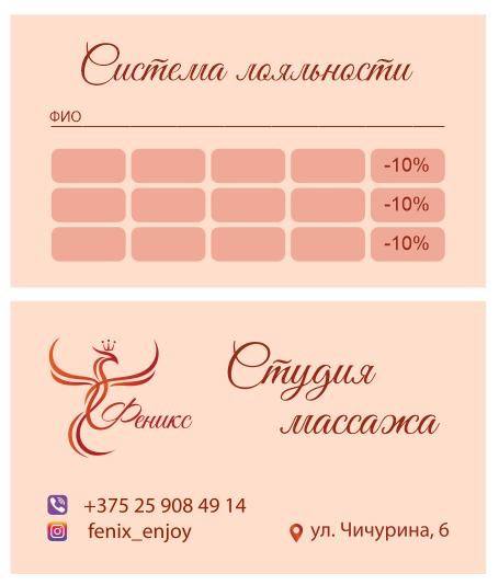 В студии массажа «Феникс» действует система скидок: